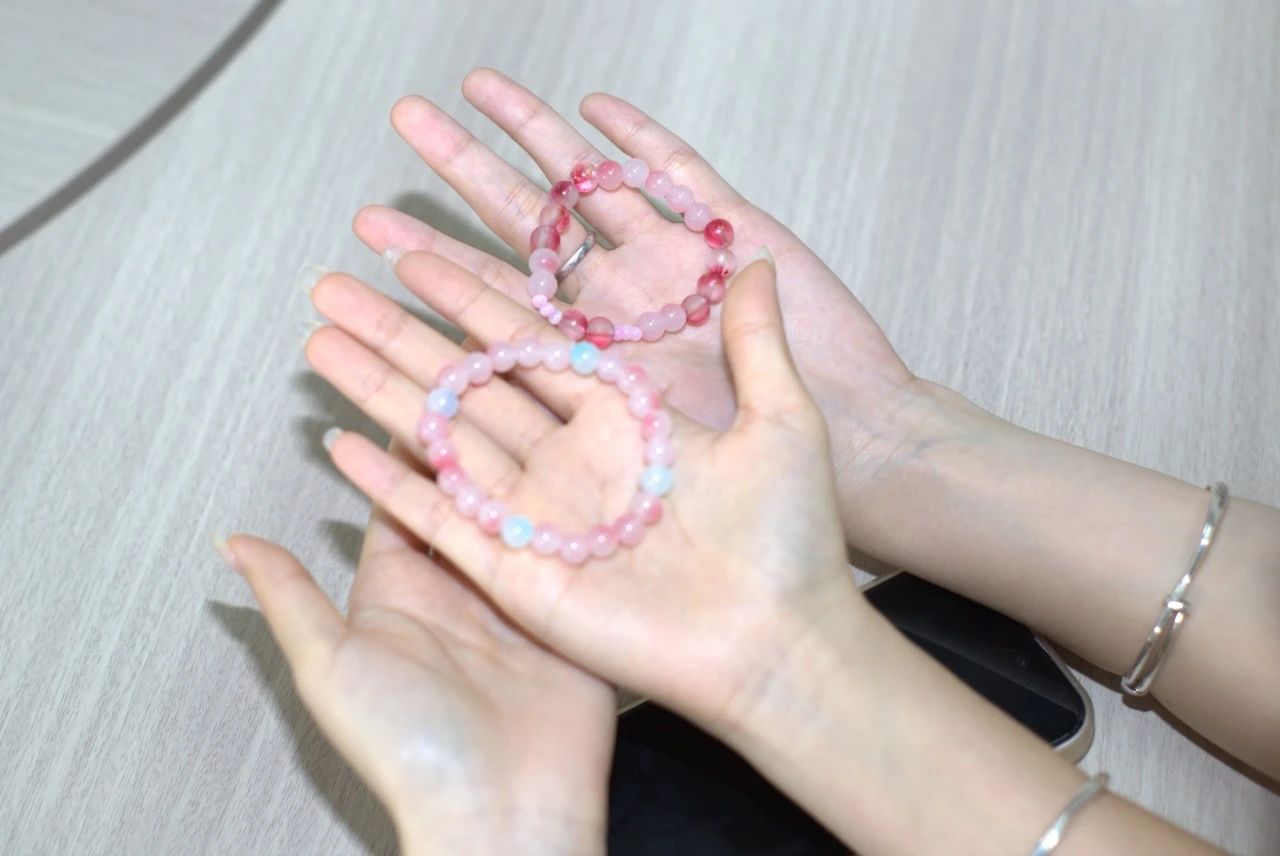 参与者们精心挑选出心仪的珠子,按照脑海中的构思将它们排列好。鱼线穿梭在珠子之间,多种色彩的珠子层层叠加,发出细微的摩擦声,仿佛是创作的旋律。