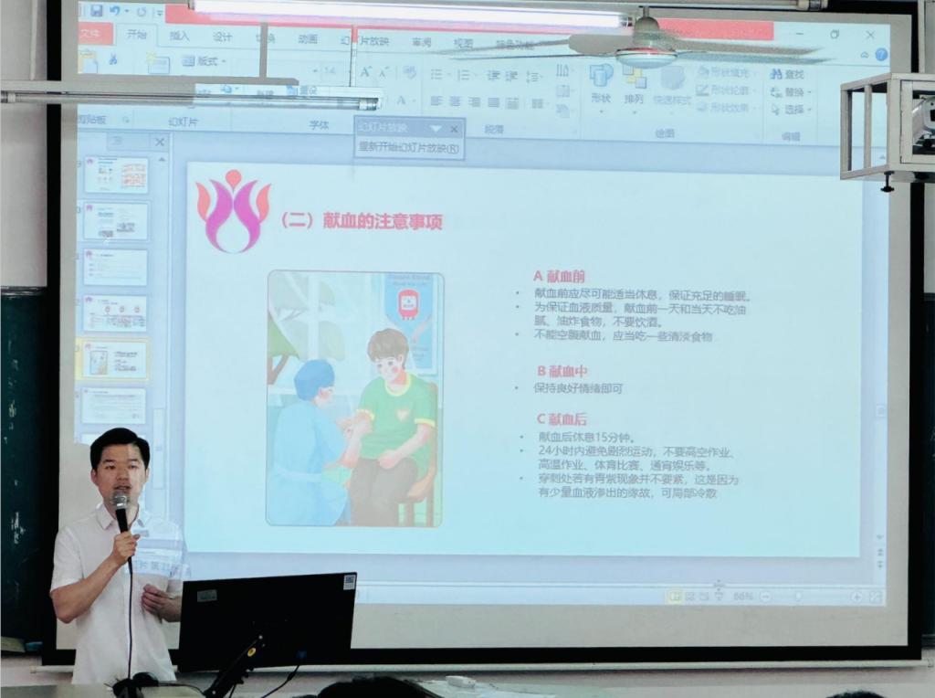 在我们生活的城市里,每一天都有人因伤病急需输血,他们的生命在生死边缘徘徊,而无偿献血,正是点亮他们生命希望的那束光。为了让更多人了解无偿献血的意义和知识,校青志联和院青协联合特别举办了这场意义非凡的无偿献血讲座。