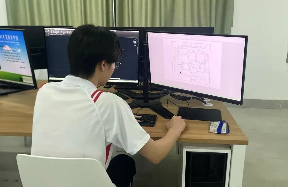 比赛伊始,选手们全神贯注、各显身手,紧张的氛围弥漫在每一个角落。他们熟练地操作着CAD软件,眼神专注地盯着屏幕,手指在键盘和鼠标上快速跳跃。