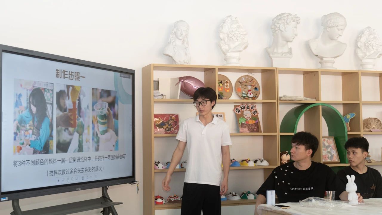 在创作过程中,同学们不仅学习到了流体画的基本技巧,更在实践中感受到了艺术疗愈的力量。他们互相交流着创作心得,分享着彼此的作品,现场洋溢着创意与欢乐。