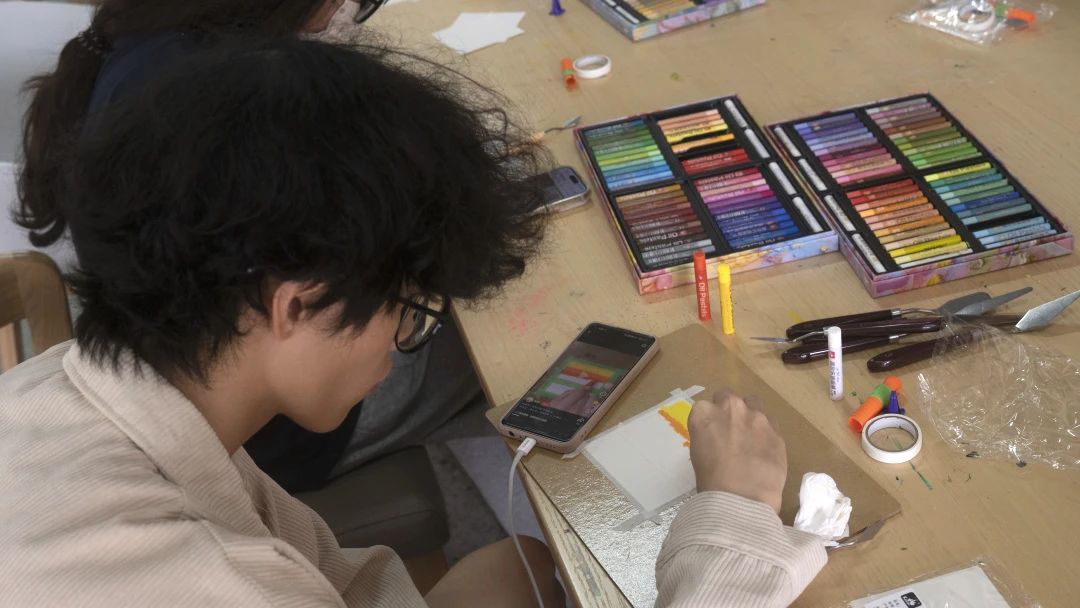 同学们投入到了创作的海洋之中,只听见油画棒在纸上摩擦的沙沙声,宛如一首轻快的交响乐,奏响着属于艺术的节奏,全神贯注地挥动着手中的画笔,仿佛整个世界都已不复存在,只剩下了他们与眼前的画纸。