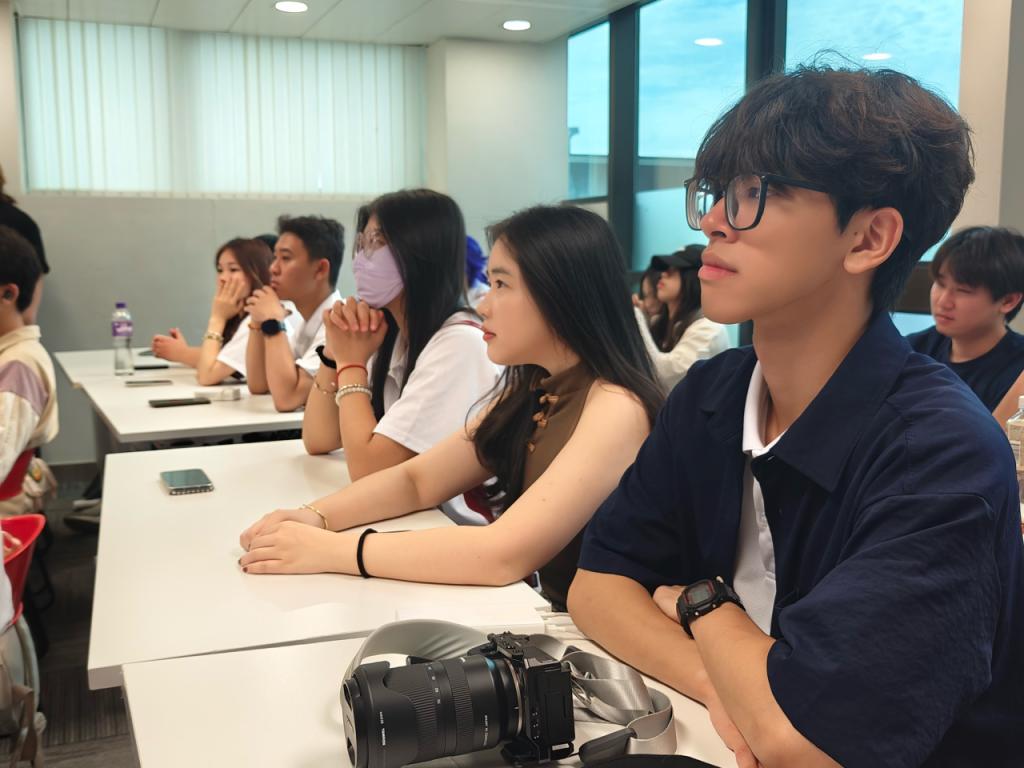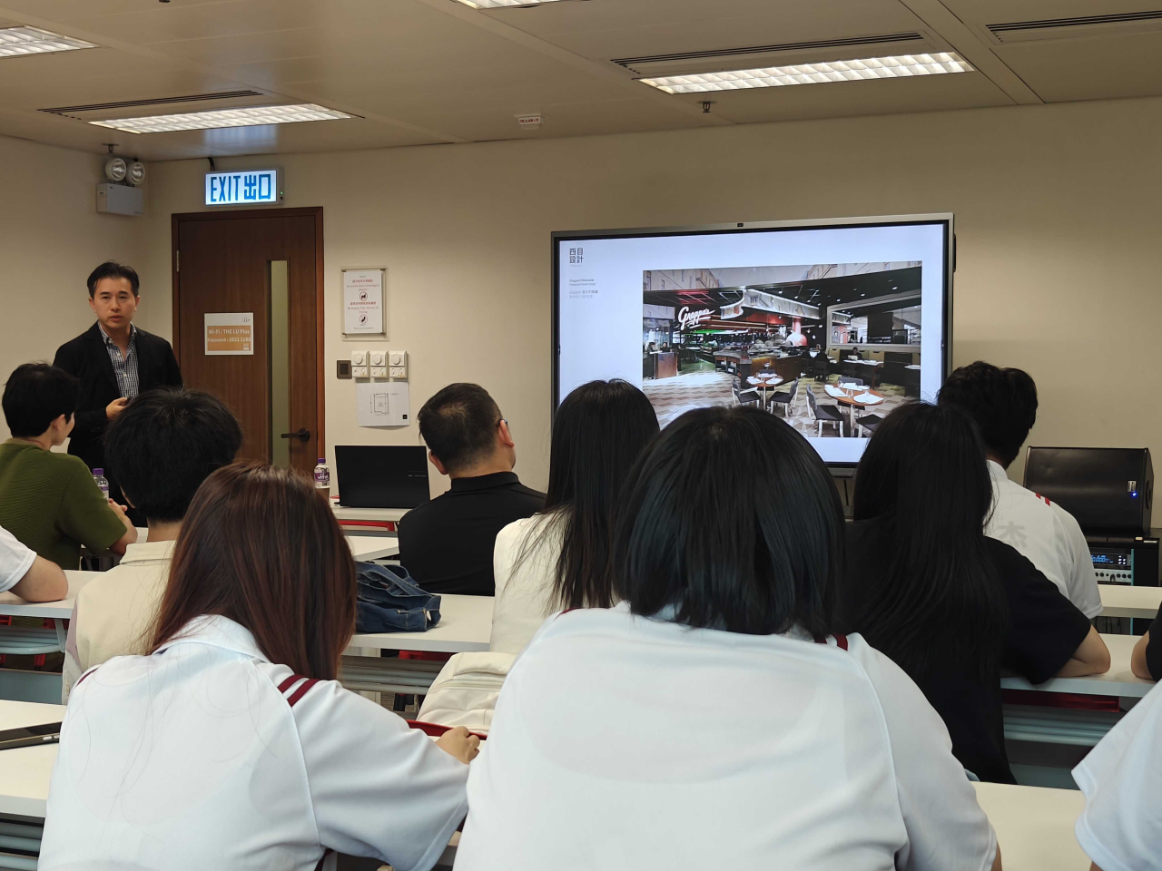 事务所总监不仅展示了精湛的空间营造技艺,更分享了其从业多年的宝贵心得。他强调了设计师作为“空间导演”和“品牌翻译者”的双重角色,指出优秀设计需深入理解品牌内核、地域文化及用户行为模式。他特别寄语未来设计师:“设计不仅是解决功能与美学问题,更是创造能引发情感共鸣、讲述独特故事的场所。保持好奇心,深耕文化,勇于跨界,是设计师持续成长的源泉。” 总监深入浅出的讲解和富有洞见的观点,深深吸引了在场的师生。同学们或凝神静听,或专注记录,或用镜头捕捉精彩案例,整个学习氛围专注而浓厚。