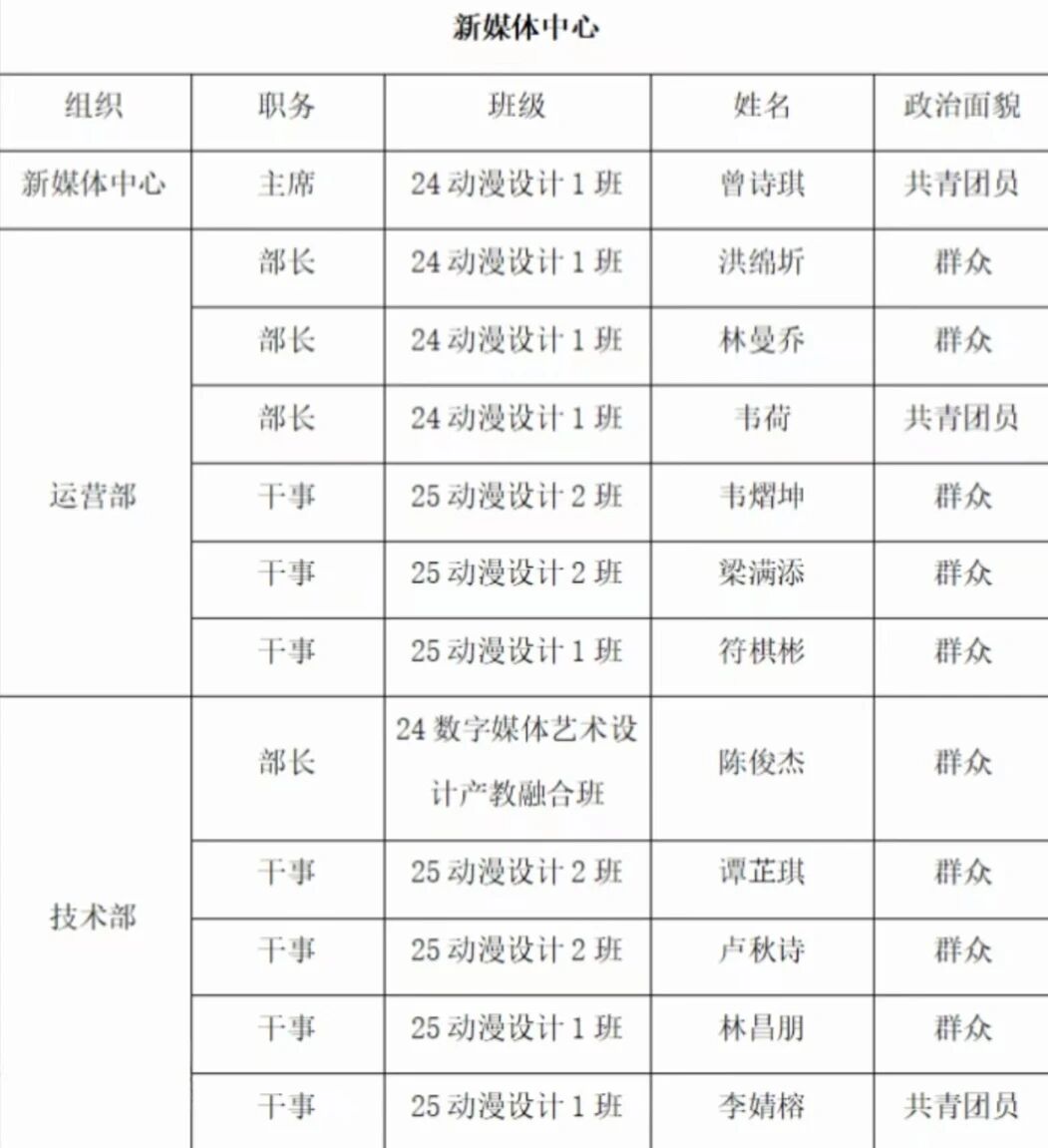 经过严格的筛选与综合评议,现正式公布各团学组织2025-2026学年第一学期招新拟录用成员名单(详见下文公示名单)
