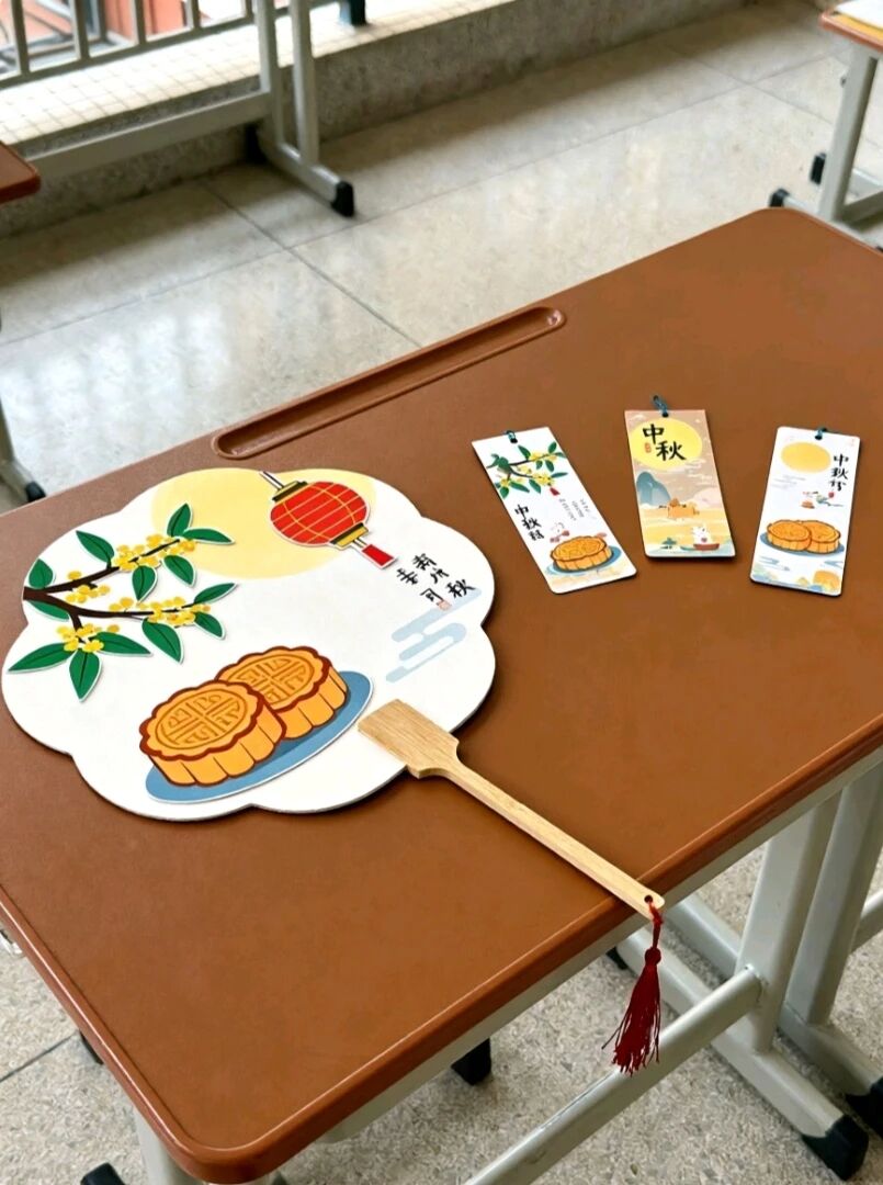 体验区:给同学们准备了diy手工扇子和手写书签。拿起画笔,为素白的兔儿爷添上粉颊、描上金线,或是将自己心中的中秋图景——桂树、玉兔、明月绘于其上,让这尊传统吉祥物成为专属于你的独家手创。通过中秋主题的展览、手作等体验,拉近参与者与家国、传统的距离,重拾对传统节日的文化记忆。无论是送给家人还是自留,都藏着“愿岁岁常圆”的美好期许。