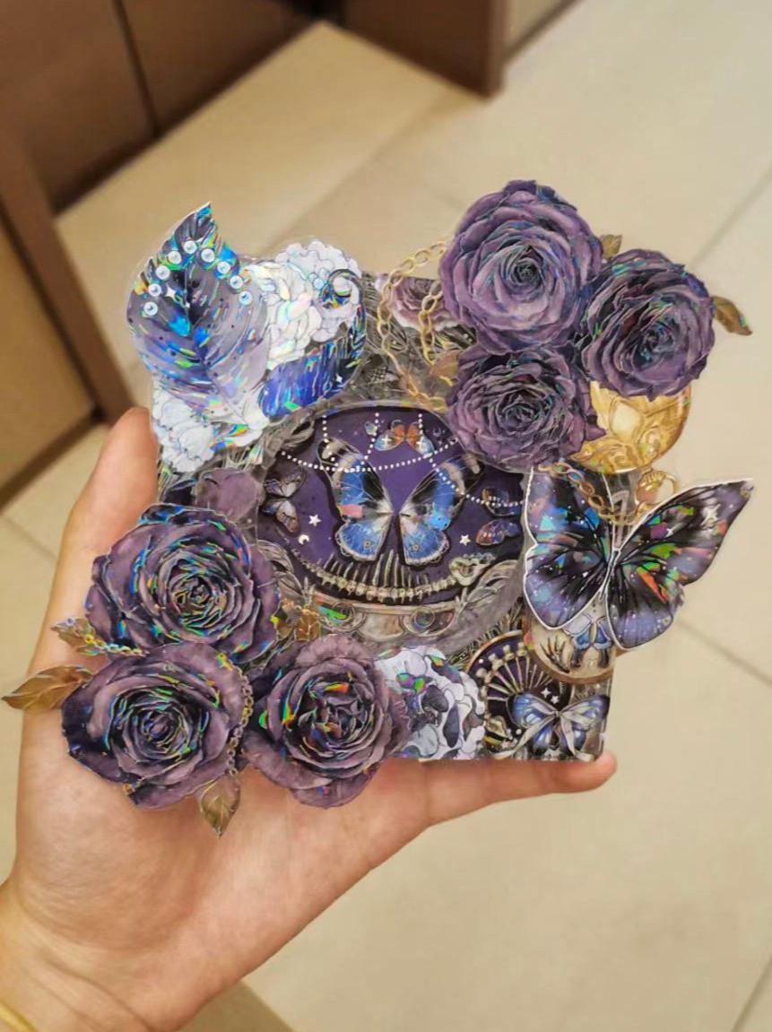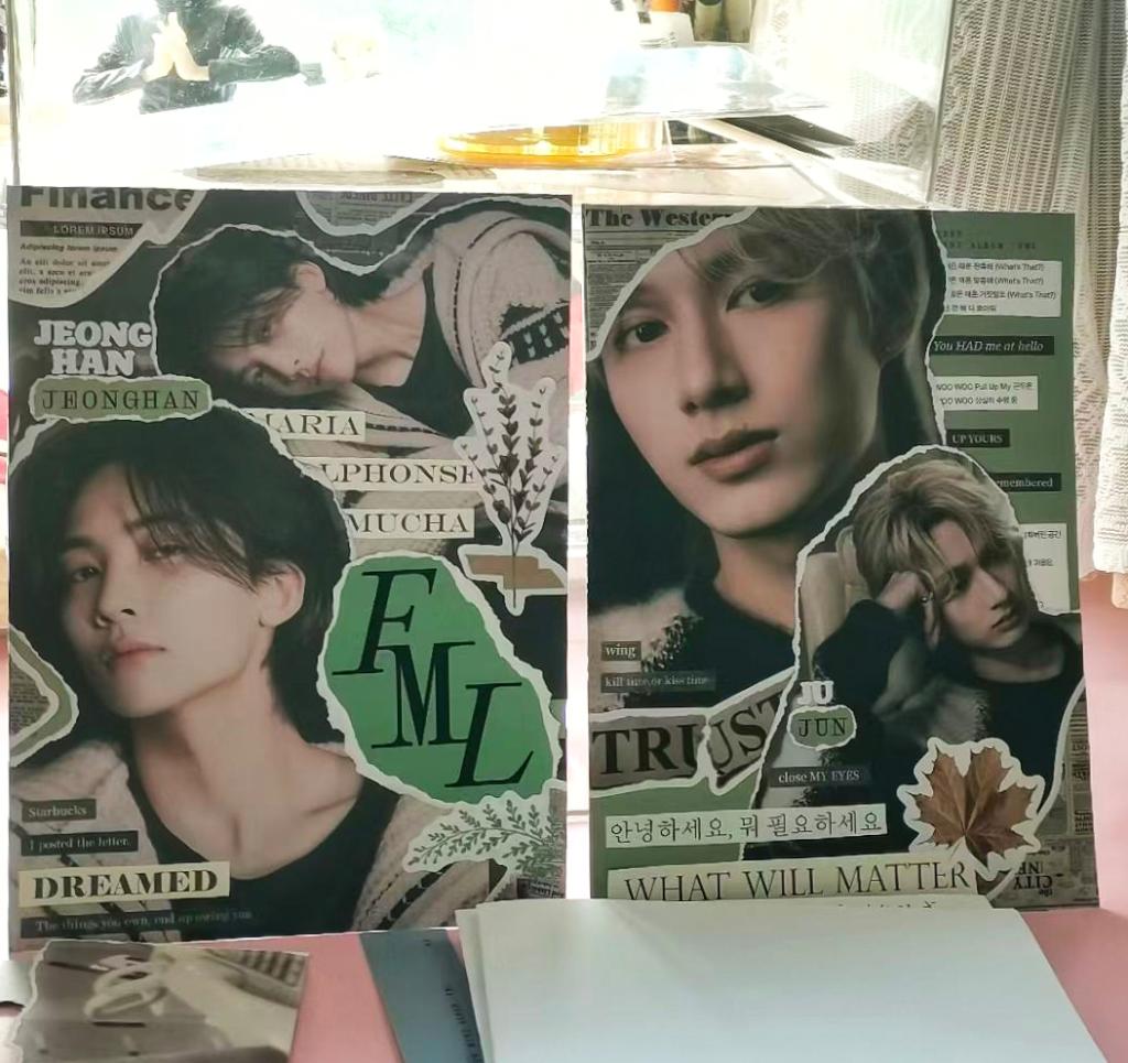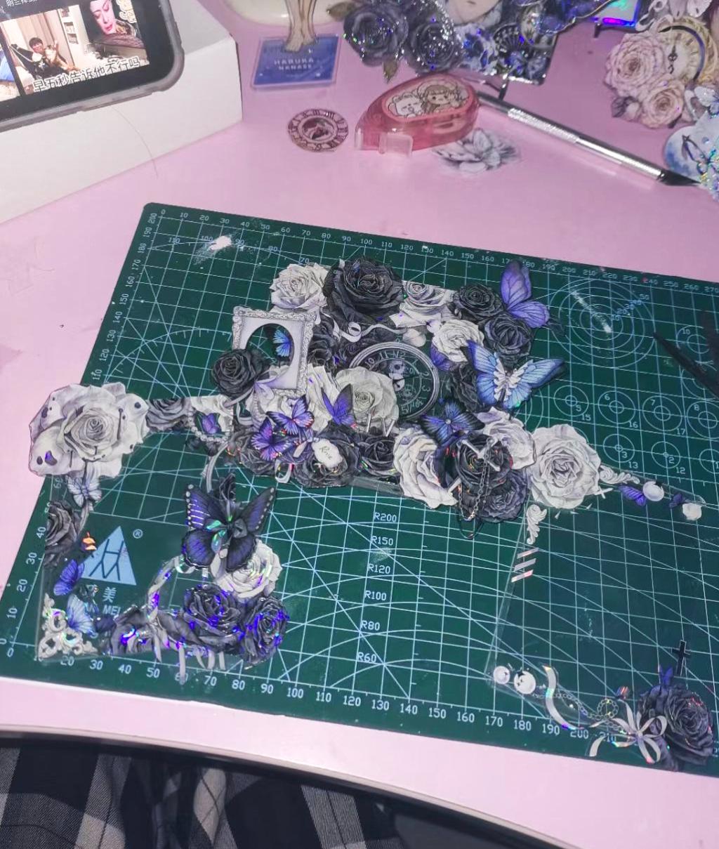 在课业之余,我的乐趣在于用双手创造独具匠心的拼贴手作。我尤其享受两种充满对比的创作形式:一是将各式贴纸精心布局于PVC板上,经过精确的裁剪与拼合,再装点在展示架上,形成一件件独特而华丽的立体装饰;另一种则是随性而富有创意的人物撕纸拼贴,在撕与贴的瞬间赋予纸张全新的生命力。