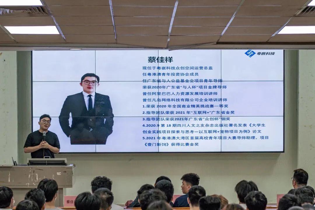 首先,蔡佳祥就创新创业的必要性、双创的政策、双创赛事概况进行了介绍。他提到,去年全国毕业生人数是1076万,到2023年全国毕业生人数是1136万,毕业生往往面临着就业形势严峻的情况,这个时候同学们更要合理利用学校的资源去参加各类实践活动与比赛,增长自身的阅历与经验,挖掘自己的亮点。参加双创大赛就是一个很好的选择,如今国家为双创大赛提供了相应的政策扶持,比如说奖金激励、高校激励以及学生激励等。参加双创大赛,不仅能获得荣誉,参赛者本身也能得到就业能力的提升,明确职业生涯的规划,这样也更有利于人才生态圈的搭建。