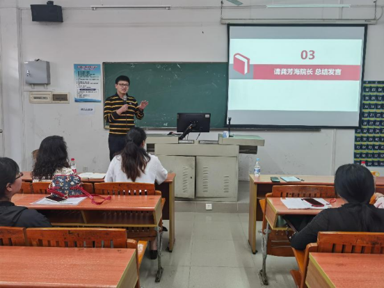 培训会后,信息工程学院龚芳海院长进行了总结发言,强调青年教师的每一次教学能力大幅提升都需要自身的努力专研和合适的机会,而本次青教赛就是一次绝佳的机会,希望全体青年教师全力以赴参加。同时,感谢陈柳红老师的赛前培训和经验分享。