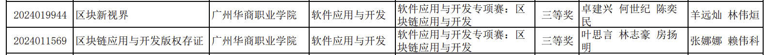 2024年6月1日至2日,由广东省教育厅主办,广东外语外贸大学承办,深圳职业技术大学协办,聚焦创新与技术的盛会——2024年广东省大学生计算机设计大赛之“区块链应用与开发”赛项精彩开赛。本次大赛汇聚了来自广东省各地的52组区块链团队,共计156名才华横溢的选手同台竞技,展示他们在计算机设计和区块链技术方面的卓越能力。我校派出由赖伟科、羊远灿、林伟烜、张娜娜老师指导的信息工程学院三只队伍,一队由陈奕民、卓建兴、何世纪组成,二队由房扬明、林志豪、叶思言组成,三队由王希希、黄佳铭、林楚强组成, 在经过个2小时30分钟的激烈比拼后,其中一队和二队分别以第18 名和第 19 名的优异成绩获得省三等奖两项。