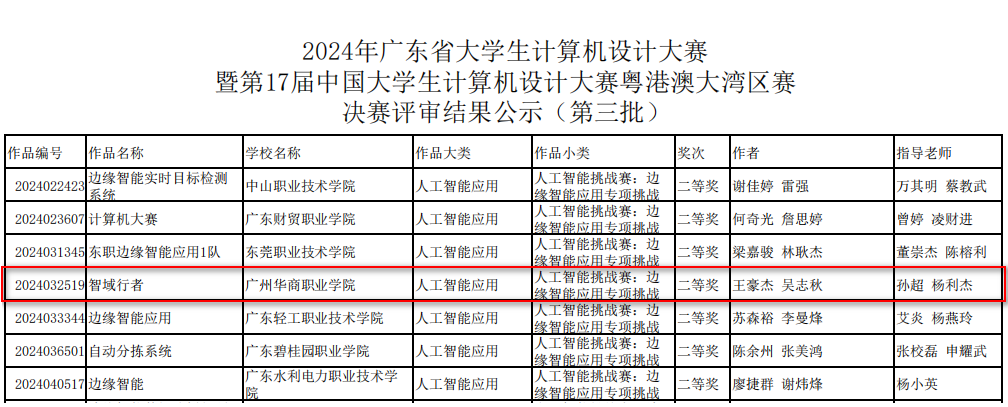 2024年6月22日,由广东省教育厅主办,广东外语外贸大学承办的2024年广东省大学生计算机设计大赛暨第17届中国大学生计算机设计大赛——人工智能挑战赛(新大陆杯)之边缘智能应用创新赛项决赛,在广东财贸职业学院清远校区圆满落幕。
