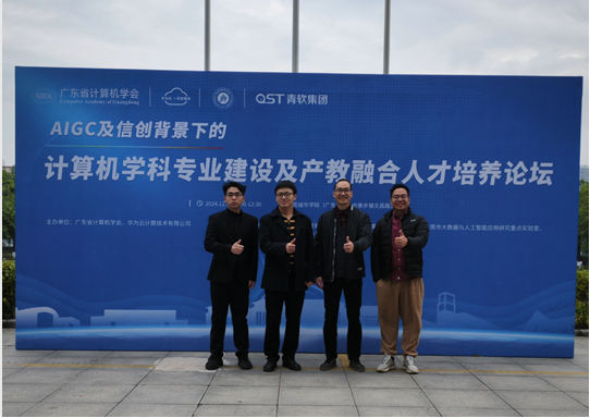 本次论坛旨在探讨如何在信创背景下,结合最新的技术发展趋势,优化计算机学科专业的课程体系与教学方法,提升教师的专业素养与教学能力。同时,本次论坛将重点讨论产教融合的有效途径通过校企合作,增强学生的实践能力与就业竞争力。论坛将邀请业内专家、学者及企业代表,共同分享成功案例与经验,探讨未来的发展方向与合作机会。由广东省计算机学会和华为云联合主办,东莞城市学院、东莞市人工智能学会和青软集团等单位联合承办,将于2024年12月14日9:00-12:30 地点:东莞城市学院。我校人工智能与数据学院院长龚芳海,副院长尹旭熙,人工智能教研室主任赖伟科,谢泽斌代表我校参与此次会议。