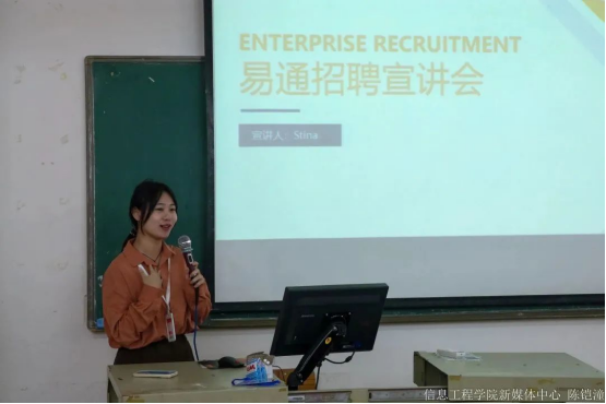 在姚学敏介绍完后,陈诗婷接着进行易通招聘宣讲。首先,她就“我们是谁?”这一问题,介绍了她们公司的创办历程以及一路走来获得的成就,并表示她们是Noon的第一位中国卖家,为大家展现了该公司的实力。