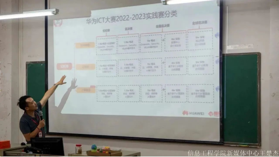 为持续加强对大学生的技术支持和培养力度,加速ICT人才的培养,信息工程学院于10月13日14点10分在博学楼B401开展华为ICT大赛讲座,参与本次讲座的人员有信息工程学院院长龚芳海、副院长王超以及信息工程学院22、23级部分学生。本次讲座邀请了来自广州腾科网络技术有限公司的张毅老师担任主讲。