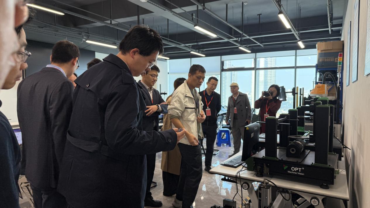 奥普特技术总监谷宏亮、人力资源总监刘总、李总等公司领导热情接待了学院教师,并对大家的到来表示热烈欢迎。在谷总监的带领下,学院教师首先走进了奥普特全场景式应用展示中心。这里展示了奥普特在机器视觉领域的最新成果,包括高精度视觉检测系统、自动化装配线视觉系统、智能识别系统等。通过沉浸式体验,教师们深刻感受到了机器视觉应用技术的魅力,并对奥普特在技术创新方面的成就给予了高度评价。