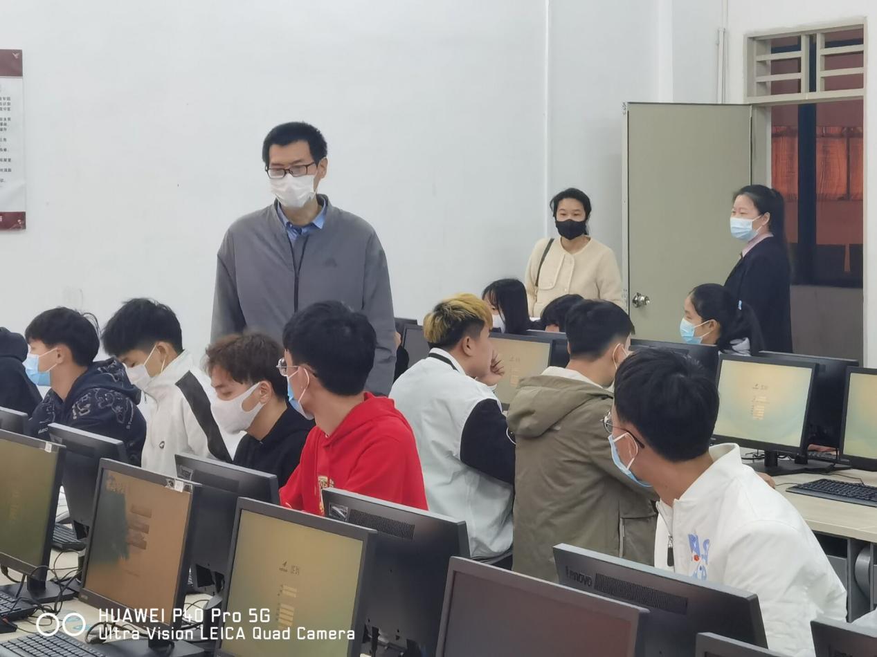 2022年2月28日早上,信息工程学院徐清振院长、王超副院长、教研室主任杨利杰、周成就、教学秘书王喆针对新学期第一节课进行了全面的查课,各个老师都能够提前到教师做好准备,并且有序组织学生戴口罩进校时上课。