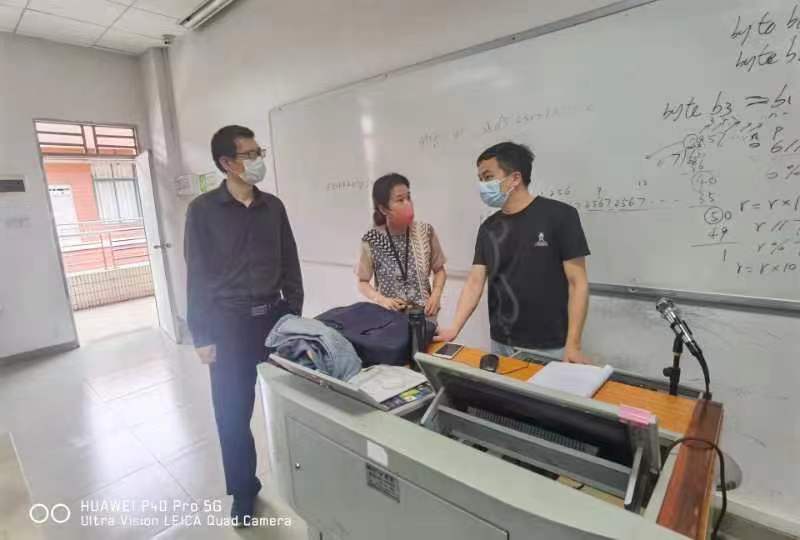 2022年4月13日早上,信息工程学院徐清振院长、王超副院长、教学秘书王喆针针对校外学生上课的问题进行了巡查,各老师都在用自己的方式给校外的学生进行教学。