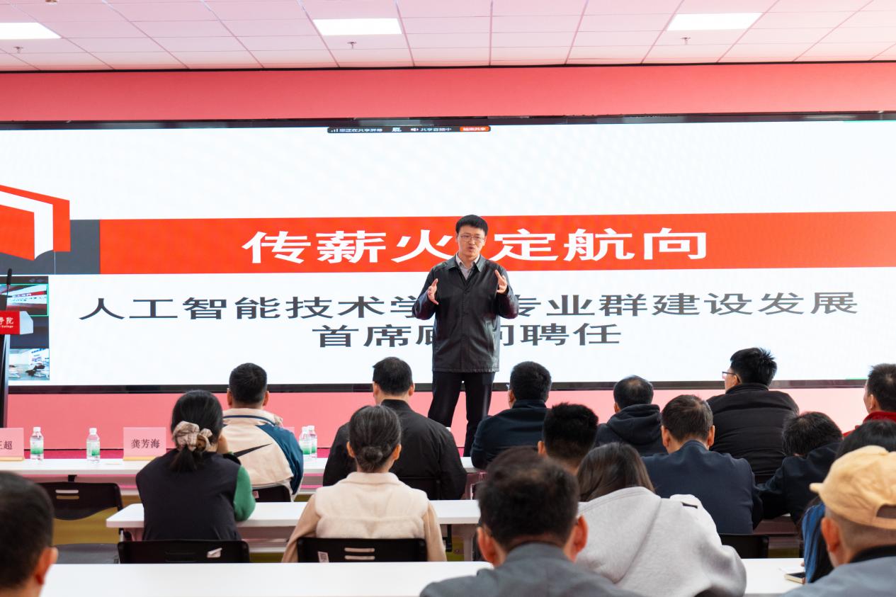 薪火相传,航向再定。学院特别聘请龚芳海教授(原人工智能与数据学院院长)担任“人工智能技术学院专业群建设发展首席顾问”。作为曾带领团队获得多项省级教学成果奖、拥有十五年以上职业教育领域管理与产教融合实践经验的资深专家,龚芳海教授的受聘具有重要战略意义,将为我院高水平专业群建设、社会服务成果孵化等教学成果培育项目等提供核心指导与关键支撑。