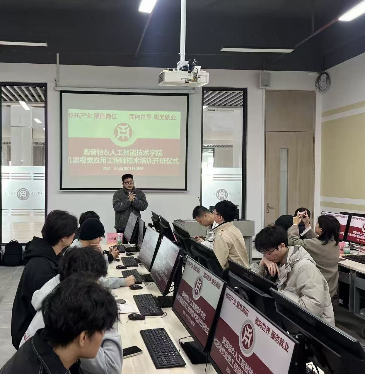 1月5日,OPT校企合作机器视觉应用工程师就业培训班开班仪式在创科楼405教室举行。该课程由学院与企业共同打造,旨在通过真实项目训练,提升学生技术应用与岗位适配能力,标志着学院在深化产教融合、对接行业需求方面迈出新步伐。