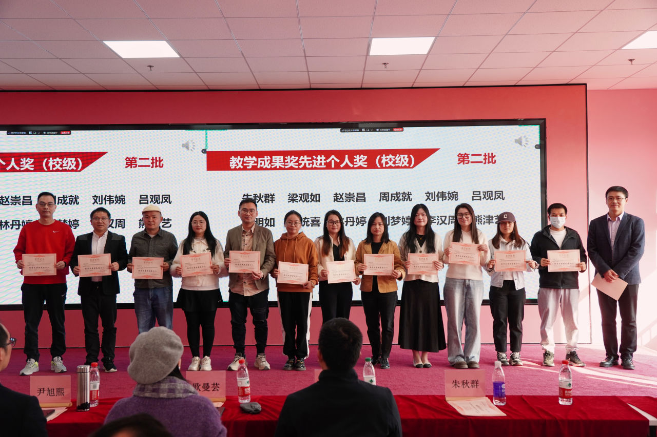 表彰环节作为大会的核心内容,备受瞩目。2025 年度,学院涌现出一大批爱岗敬业、业绩突出的先进个人,他们在教学、科研、学生工作、社会服务等各个领域发光发热,用实干诠释担当,用匠心书写精彩。本次表彰共设置四大类奖项,涵盖综合类、教科研类、竞赛指导与社会服务类、专项工作类,包括 “优秀教师”“优秀教育工作者”“教科研先进个人”“省级竞赛优秀指导教师”“优秀心育工作者” 等多个荣誉称号。