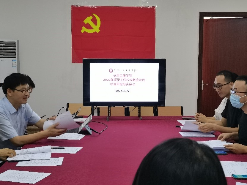 根据《关于公布 2022 年校级教育教学质量与教学改革工程(第一批)项目立项名单的通知》(华职教务〔2022〕28号)、《关于公布 2022 年校级教育教学质量与教学改革工程(第二批)项目立项名单的通知》(华职教务〔2022〕33 号)文件精神,为充分论证项目的可行性和研究目标的有效性,信息工程学院于2022年6月22日中午12:30-13:40在信息工程学院博B407会议室召开了2022年校级教育教学质量与教学改革工程项目开题报告会议。