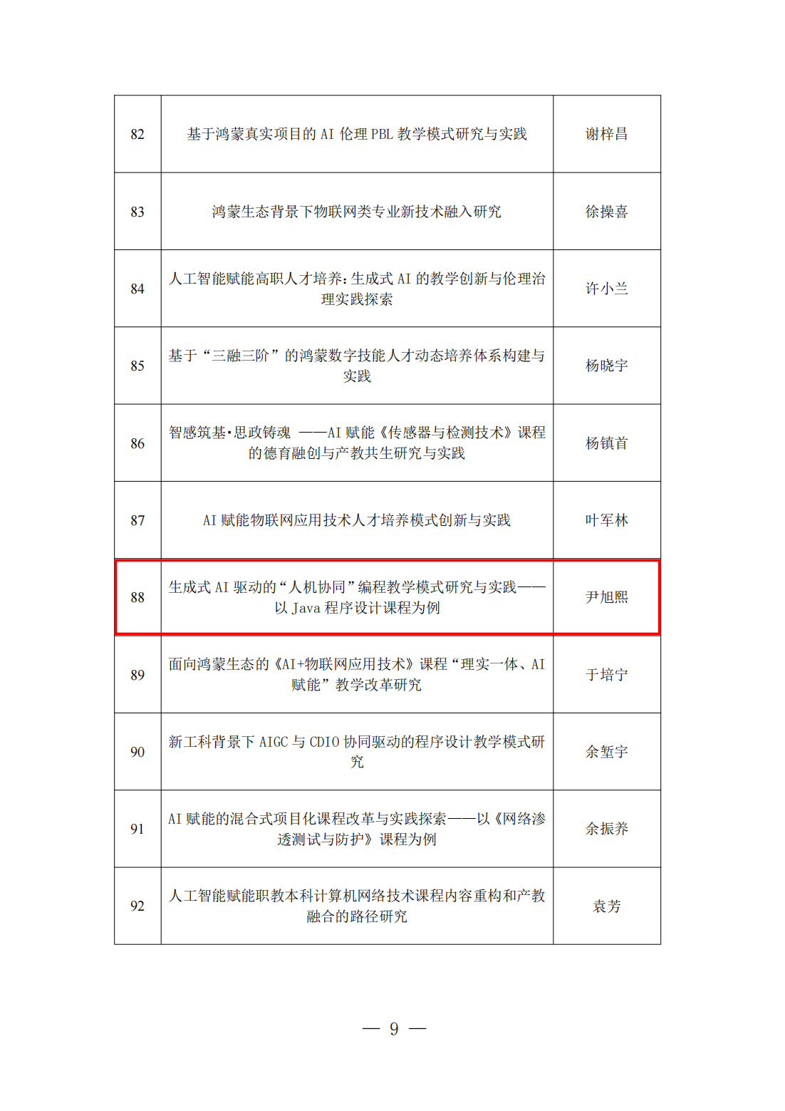 3.尹旭熙老师主持《生成式AI驱动的“人机协同”编程教学模式研究与实践——以Java程序设计课程为例》