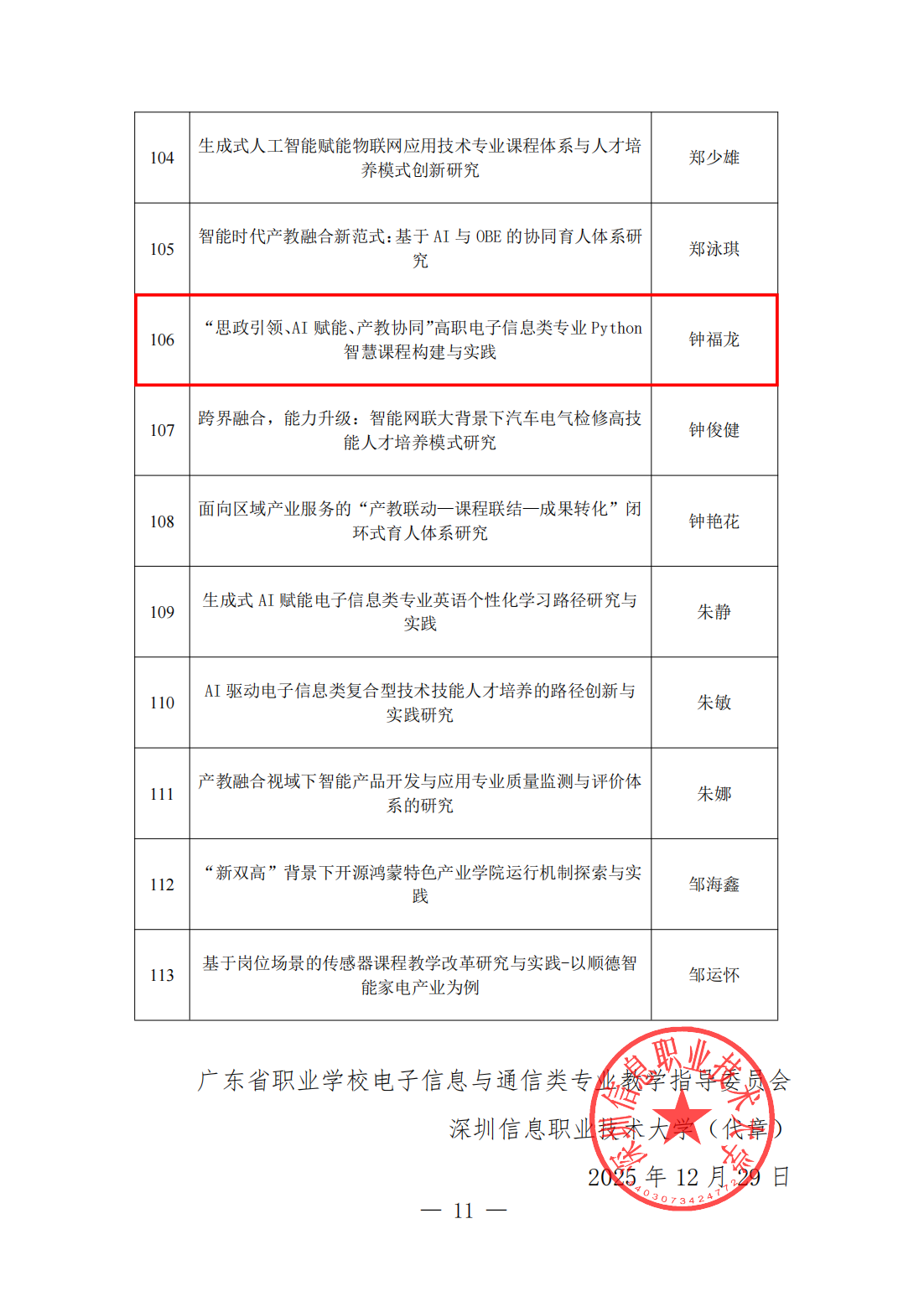 4.钟福龙老师主持《“思政引领、AI赋能、产教协同”高职电子信息类专业Python智慧课程构建与实践》