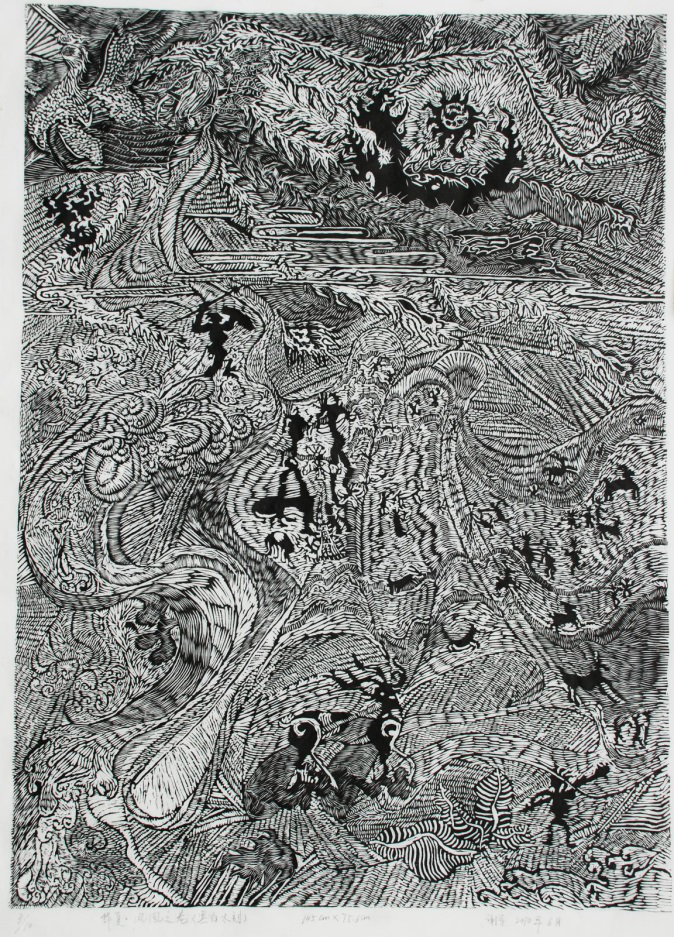 谢军《华夏凤凰》版画 106*75cm