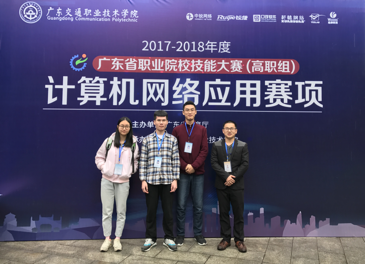 2018年1月6日,2017-2018年度广东省职业院校技能大赛(高职组)“计算机网络应用”赛项在广东交通职业技术学院拉开帷幕。我系梁观如老师指导林宗柱等3名同学参加此比赛。