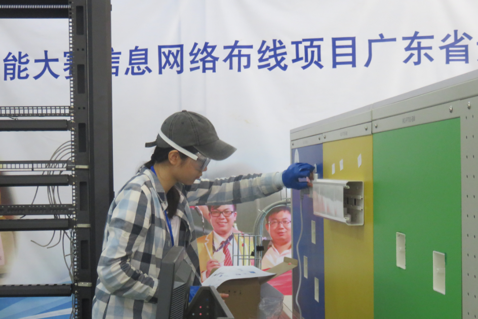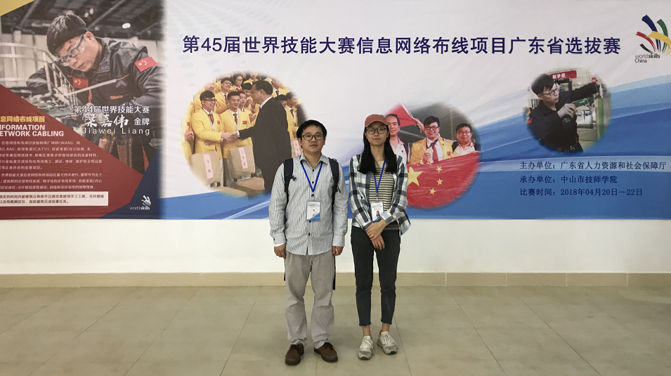 2018年4月21日-22日,第45届世界技能大赛广东省选拔赛信息网络布线项目竞赛在中山市技师学院拉开帷幕。我系梁观如老师指导欧丽平同学参加此项比赛。