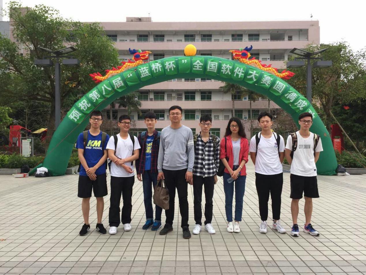 2017年4月8日“第八届蓝桥杯全国软件大赛”广东省赛区的比赛在广州工程职业技术学院拉开帷幕,我系沈程鹏老师、王曼老师指导虞日梁等7名同学参加此次比赛。