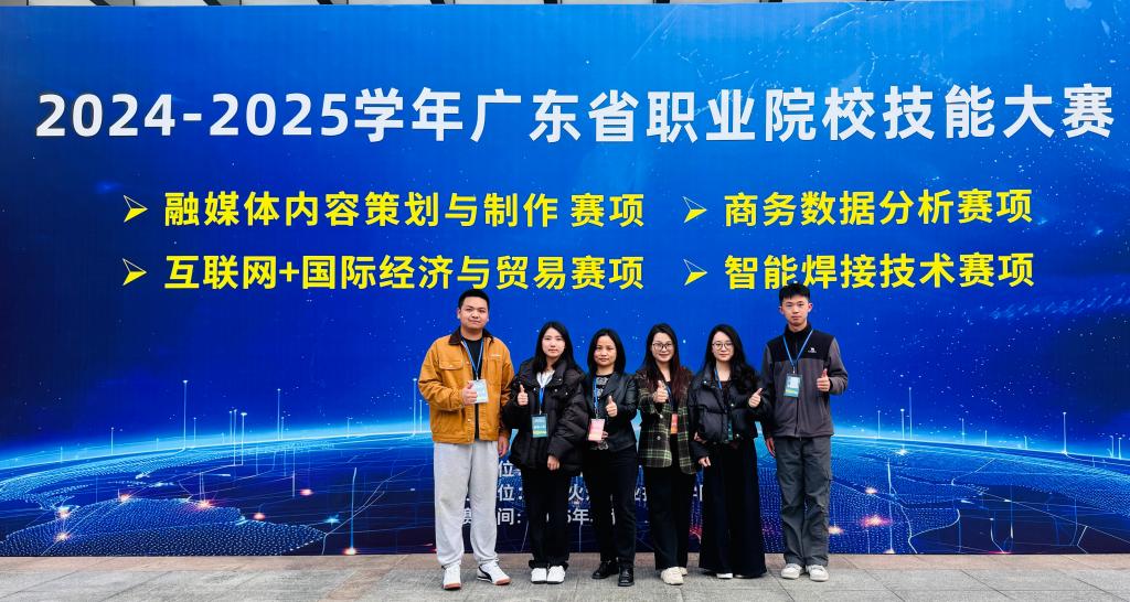 2025年3月8日至9日,我校人工智能与数据学院刘梦婷、吕观凤老师带领魏锴锴、蔡雅诗、梁怡媛、罗创4位学生前往中山火炬职业技术学院参加2024-2025年度广东省职业院校技能大赛“融媒体内容策划与制作”赛项。