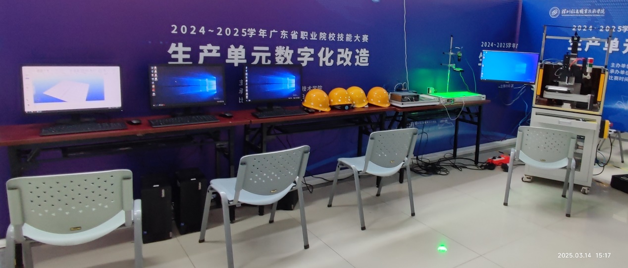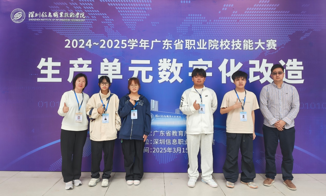 2025年3月15日,广东省职业院校技能大赛“生产单元数字化改造”赛项在深圳信息职业技术学院成功举办,该赛项吸引了全省多所高职院校共计41支队伍参赛,我校人工智能与数据学院杨利杰和孙超老师带领曾嘉慧、卢桂熙、郑洽勋、唐钖四位同学积极参赛、迎接挑战。