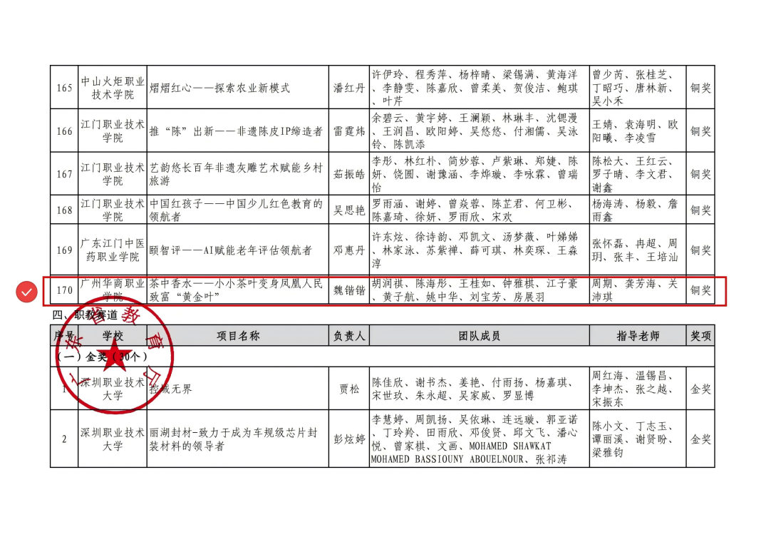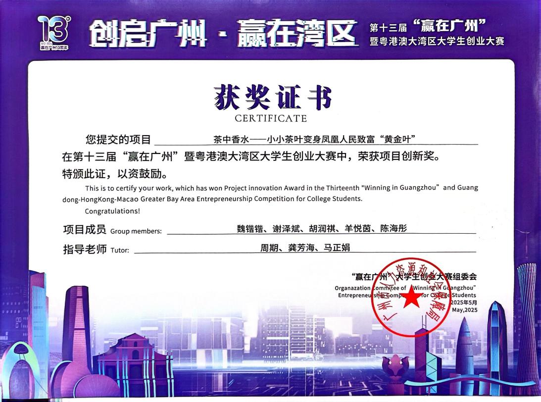 近日,中国国际大学生创新大赛(2025)广东省分赛获奖名单正式公布。在这场汇聚全省48.45万个项目、193.35万人次的激烈角逐中,我校人工智能与数据学院“茶中香水”项目脱颖而出,荣获“青年红色筑梦之旅”赛道铜奖,实现我校在该赛道历史性突破!