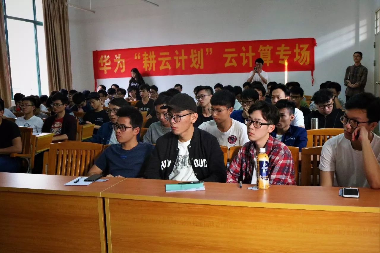 开幕式过后,接下来是拥有“华为数据通讯”“华为运营商”“华为云计算”三大认证的认证专家欧灿荣总监为大家带来了“云人才,领时代,与云同行、与时代同行——华为HCIE-Cloud”的技术交流,接下来欧总监为大家介绍了未来5年世界的IT新趋势,以及简单的让大家了解ICT技术进化和时代发展引擎,紧接着欧总监由大型机时代向PC时代再到如今的云计算时代一一的为现场的人们作出了分析,接下来欧总监的一个“如何成为一个云计算工程师以及云计算工程师需要面对的是什么”让全场的师兄师姐们紧皱眉头,然而欧总监简练的提出:技术基础、项目流程、典型场景、人才标准,这就是如何成为一个云计算工程师以及需要面对的是什么,为了解决技术人员的挑战,HCIE——Cloud顺应而生,欧总监简单的让大家了解HCIE——Cloud的培训内容,“笔试、机试、面试”过了HCIE——Cloud的这三关便赢未来。欧总监以这样的方式去鼓舞即将毕业进入职场的大三学生,毋庸置疑,欧总监为大家们带来了一场精彩的讲解,促使台下的所有人听得全神贯注。