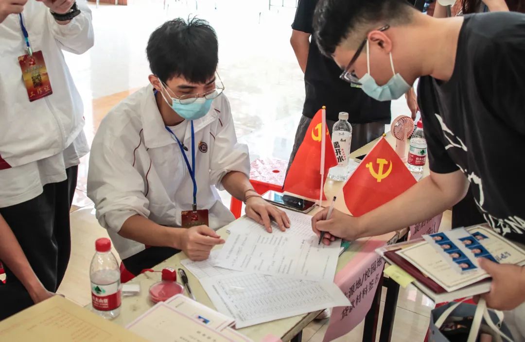 由胡珈源老师带领的团学工作人员为毕业生进行团员转接审查