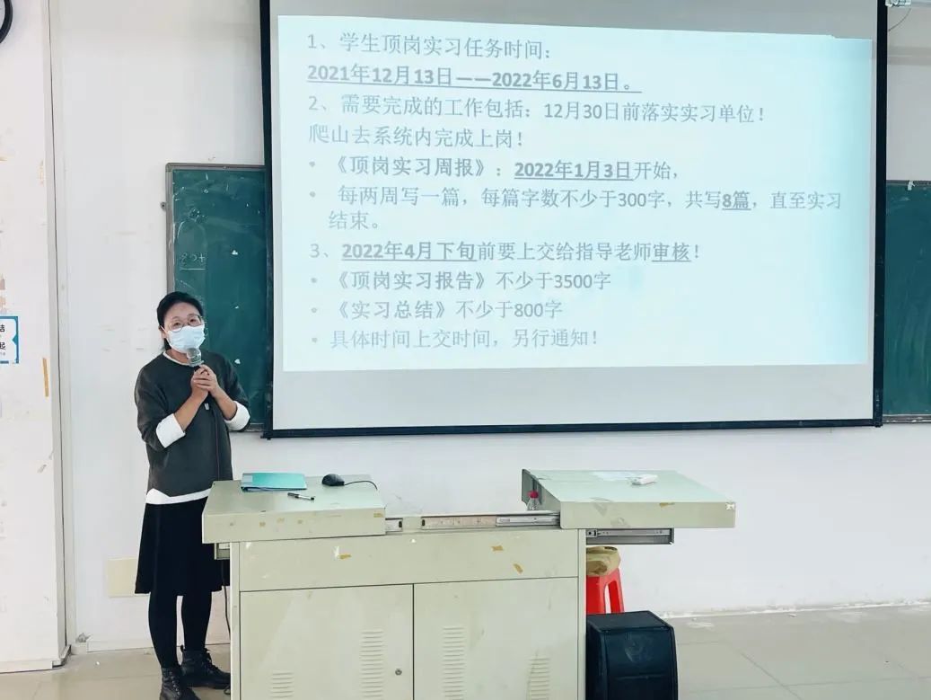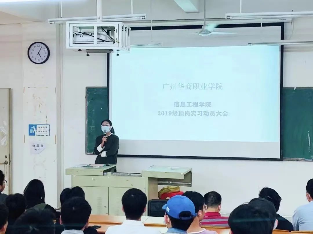为进一步做好2019级毕业生顶岗实习工作,引导学生做好实习前的工作准备我院于2021年12月8日,下午16:00在博C501召开19级顶岗实习动员大会,莅临本次动员大会的领导老师有信息工程学院王超副院长、李文彪副院长、欧曼芸党总支副书记,2019级辅导员和各专业科指导老师等,主讲人生沙沙老师以及全体2019级实习生。