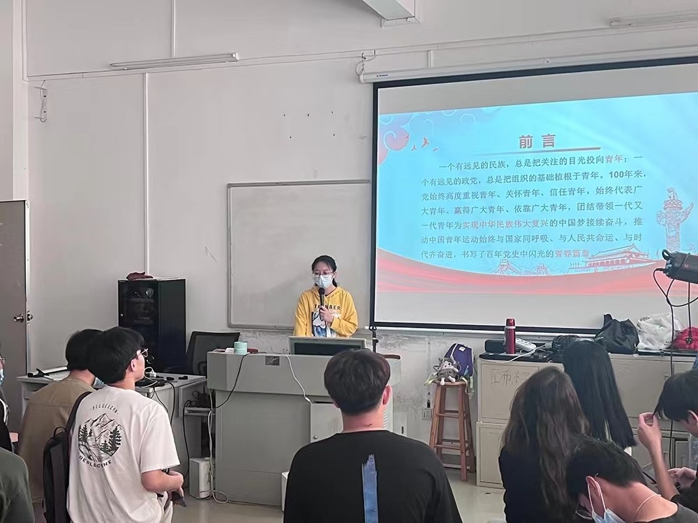 吴欣瑶老师以宣传党的二十大以及建团100周年为背景,融合共青团特色,带领大家学习党领导中国青年运动的光辉历程,加深同学们对共青团发展的认识,从中收获对青年团员的启示。