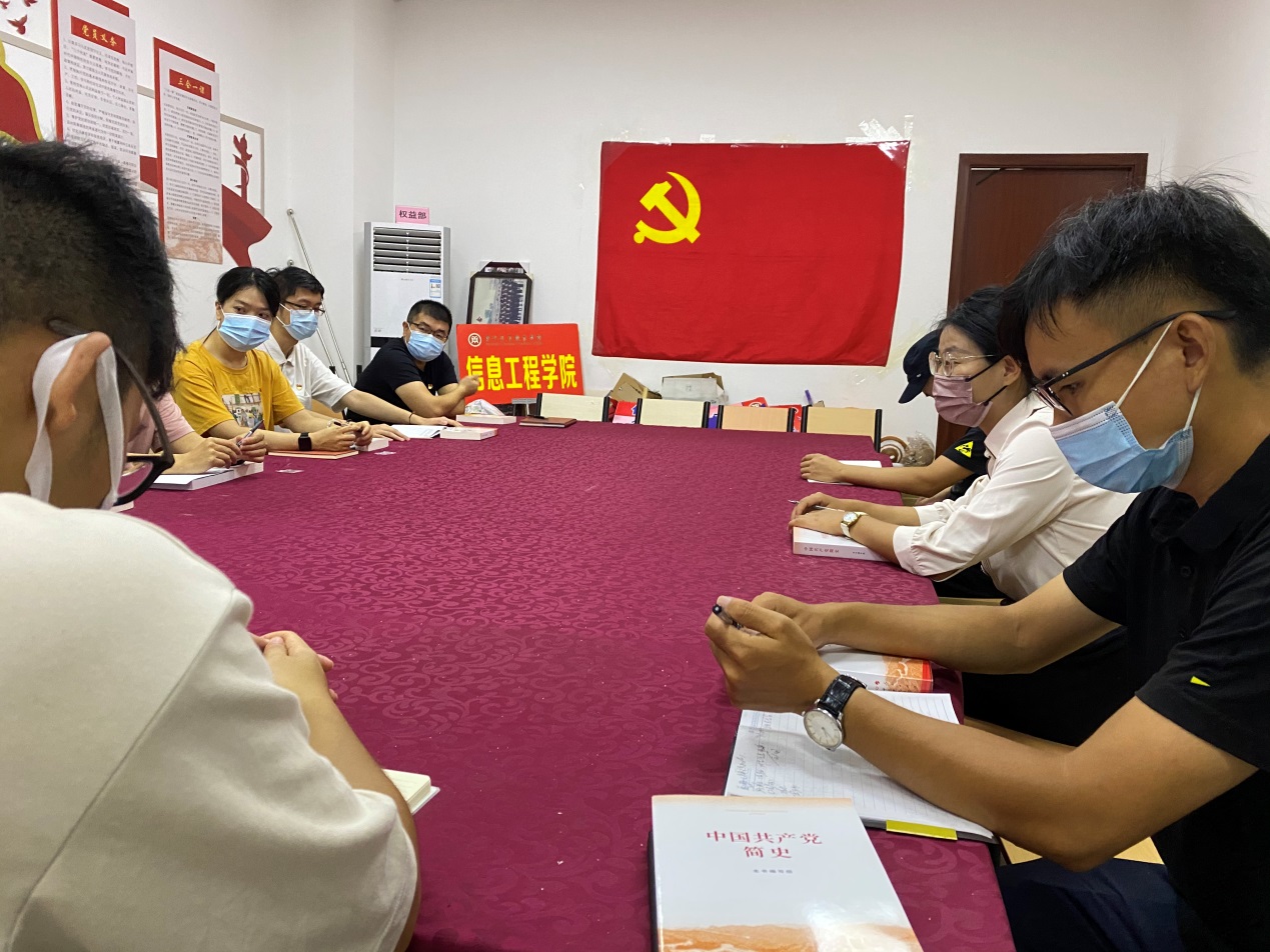 会议开始,信息工程学院党总支副书记吴仕坚同志带领全体参会人员深入学习了习近平总书记“七一”重要讲话,学习习近平中国特色社会主义思想和相关学习材料,对照党史学习教育目标查找自身差距,切实讲党史学习融入到工作实践中。