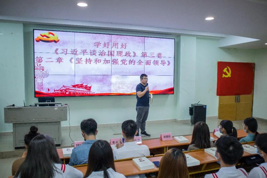 党总支副书记吴仕坚同志以“坚持和加强党的全面领导”为主题进行分享。他强调要在自我革命中发挥自己的作用,服从党组织的安排,积极履行党员义务,并且要学好用好《习近平谈治国理政》第三卷,提高自己的思想和先锋模范作用。