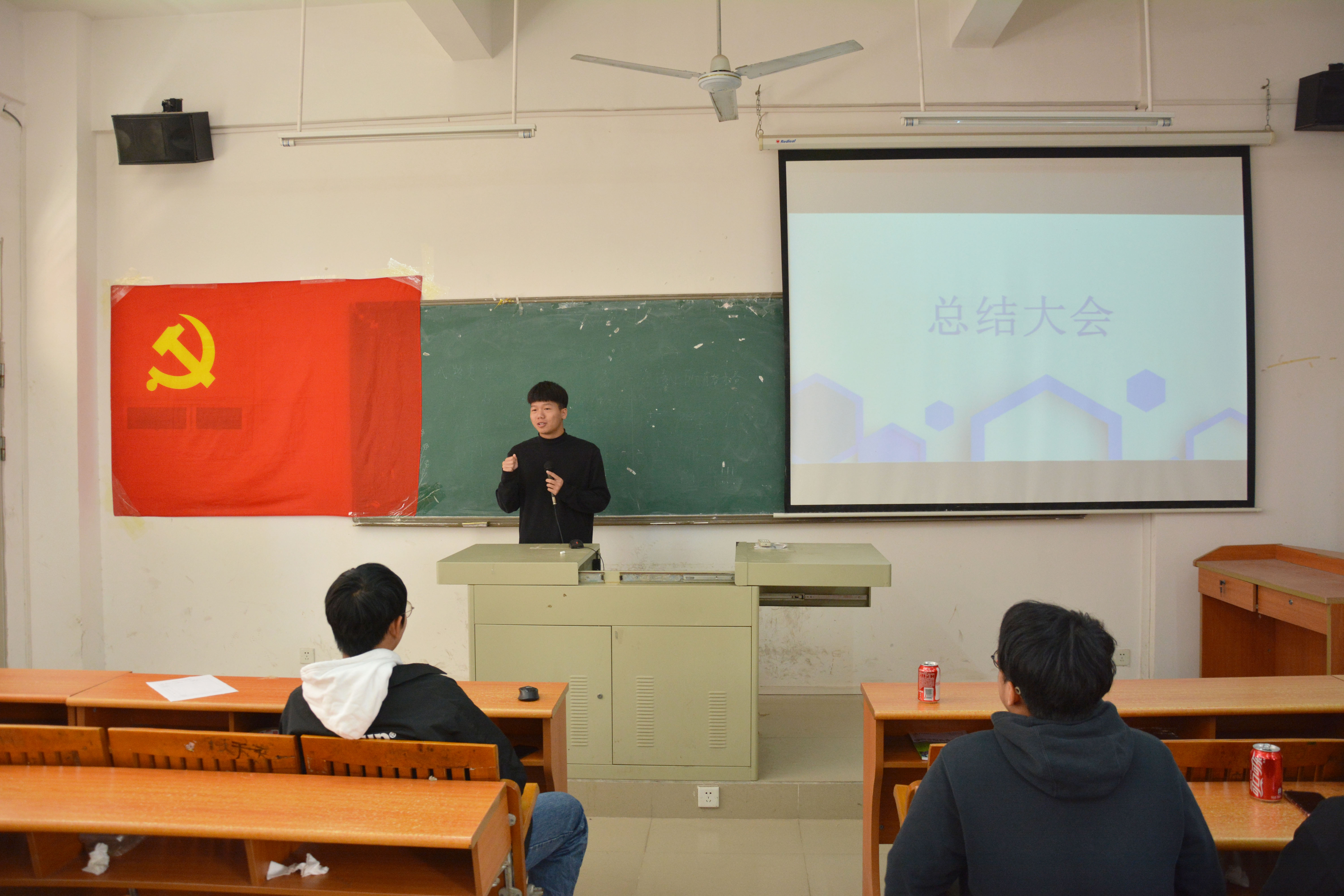 首先由党务组组长游嘉乐进行汇报,通过PPT一同回顾了党务组本学期举办的会议及活动。他讲道:“在这学期间,我们在党支部书记吴仕坚同志、副书记生沙沙同志、宣传委员黄从亮同志指导和带领下顺利开展各项活动,同时也离不开各小组组长与组员共同努力的付出”。