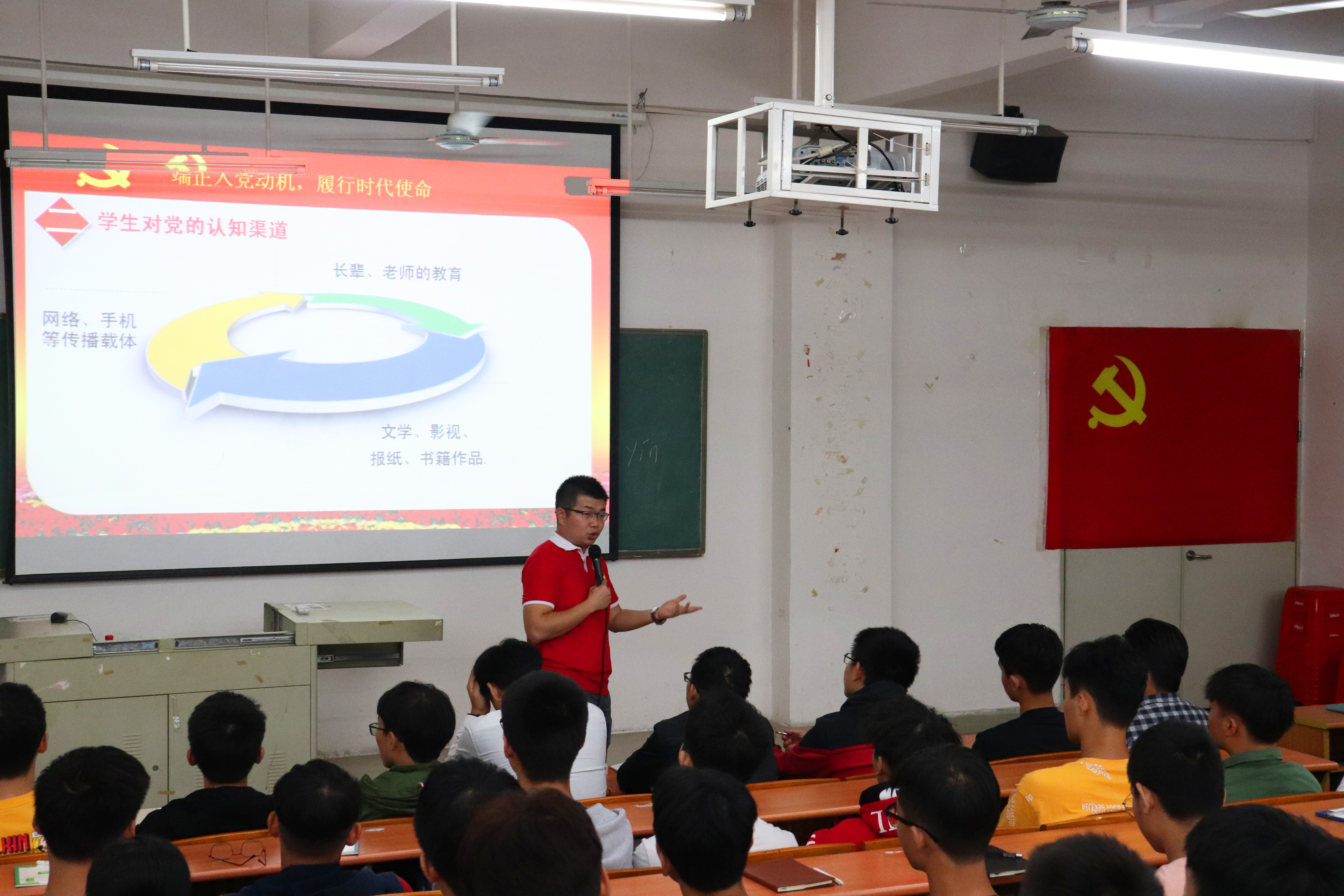 为提高我院入党积极分子及志愿加入中国共产党的学生对中国共产党的认知,信息工程学院党支部于2019年10月29日18:15分,在博A507组织我院党课学员开展了党课培训第三讲,信息工程学院党支部书记吴仕坚同志以“端正入党动机,认识党员发展程序”为主题展开了本次党课培训。