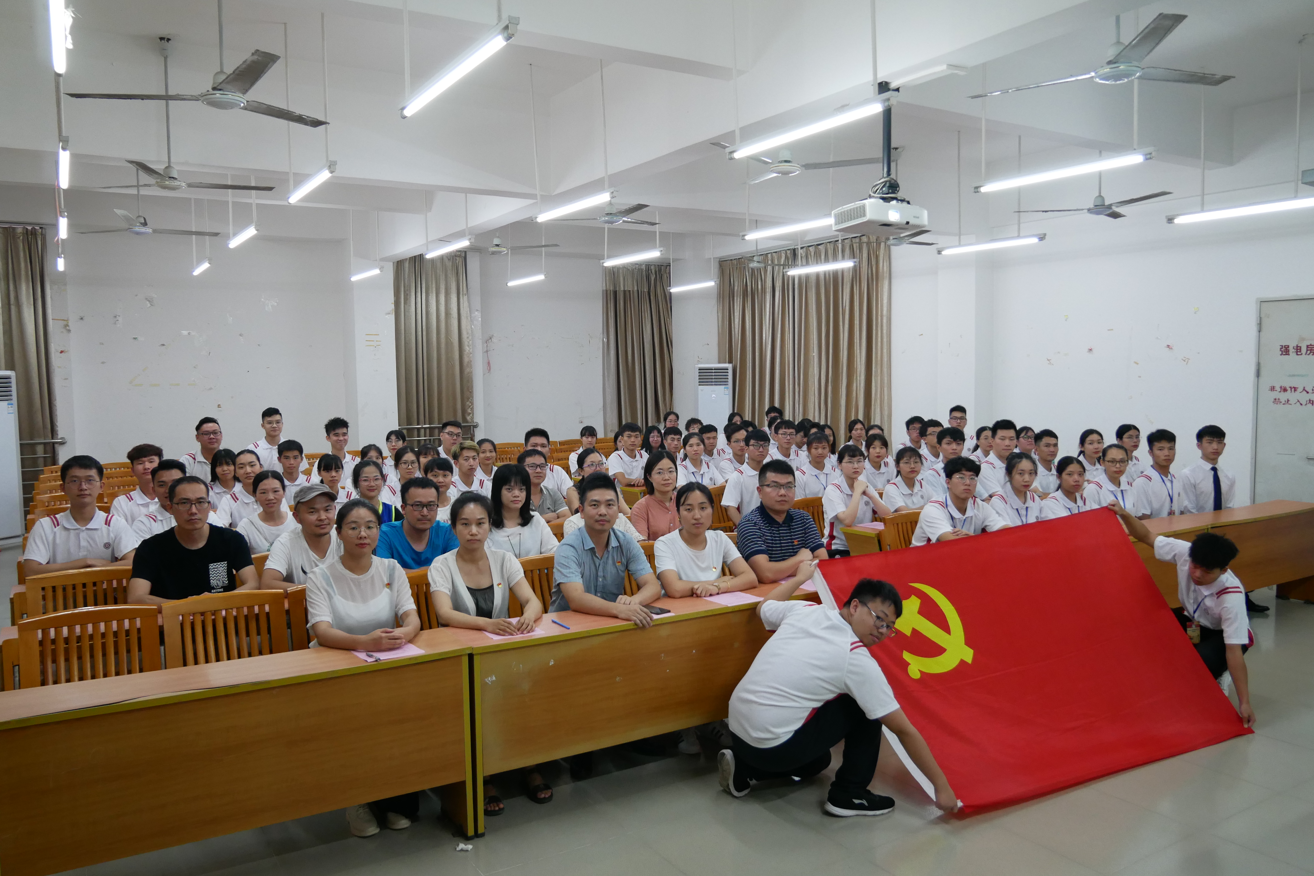 信息工程学院党支部书记吴仕坚同志、副院长王超同志、党支部副书记陆孟彤同志、宣传委员生沙沙同志、全体师生党员以及入党积极分子参与了本次会议。
