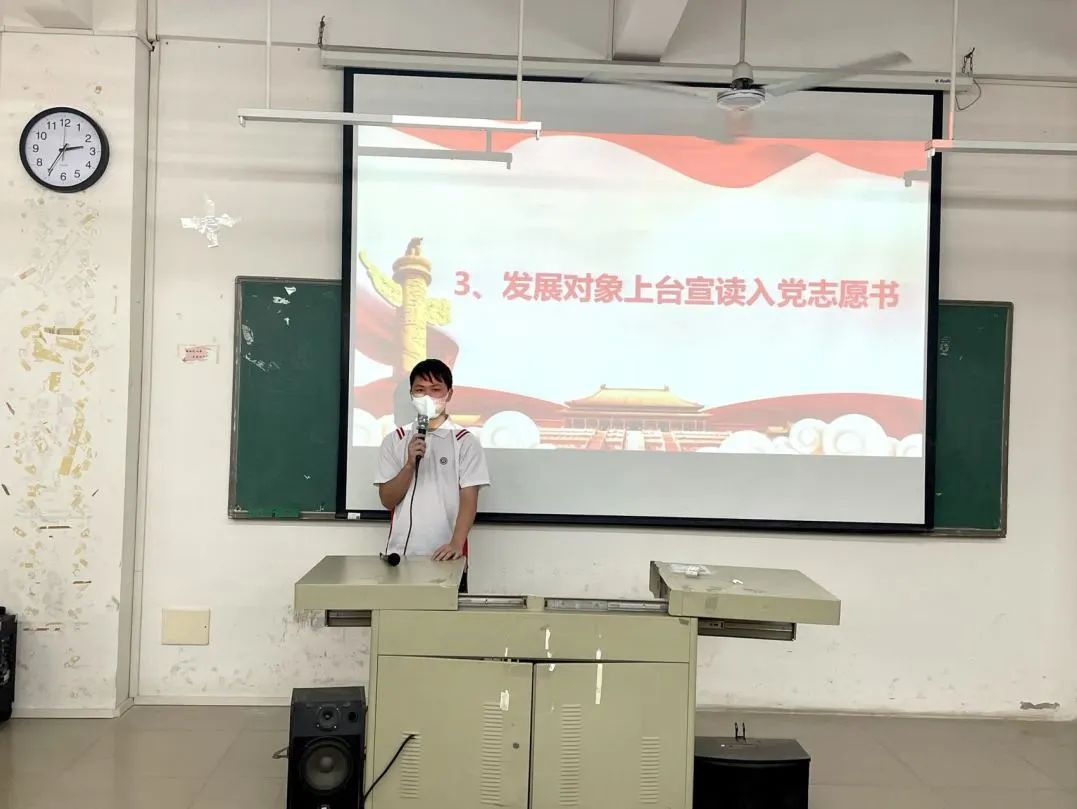 会议第二项议程,本期需通表的发展对象依次上台宣读《入党志愿书》。