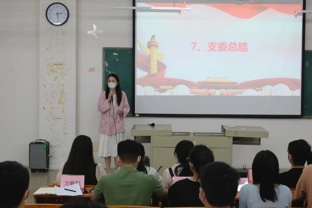 会议第六项议程,党总支副书记欧曼芸同志作大会总结。欧曼芸同志对本期通表发展为预备党员的同志表示祝贺,她强调通表后更应端正入党动机,在今后的生活中不断加强理论知识的学习,同时明确自己的责任和义务。在党组织的带领下,继续发扬党的优良传统,做到从群众来到群众中去,在学生中起带头模范作用,带动身边同学积极向上,为共产主义事业奋斗努力。