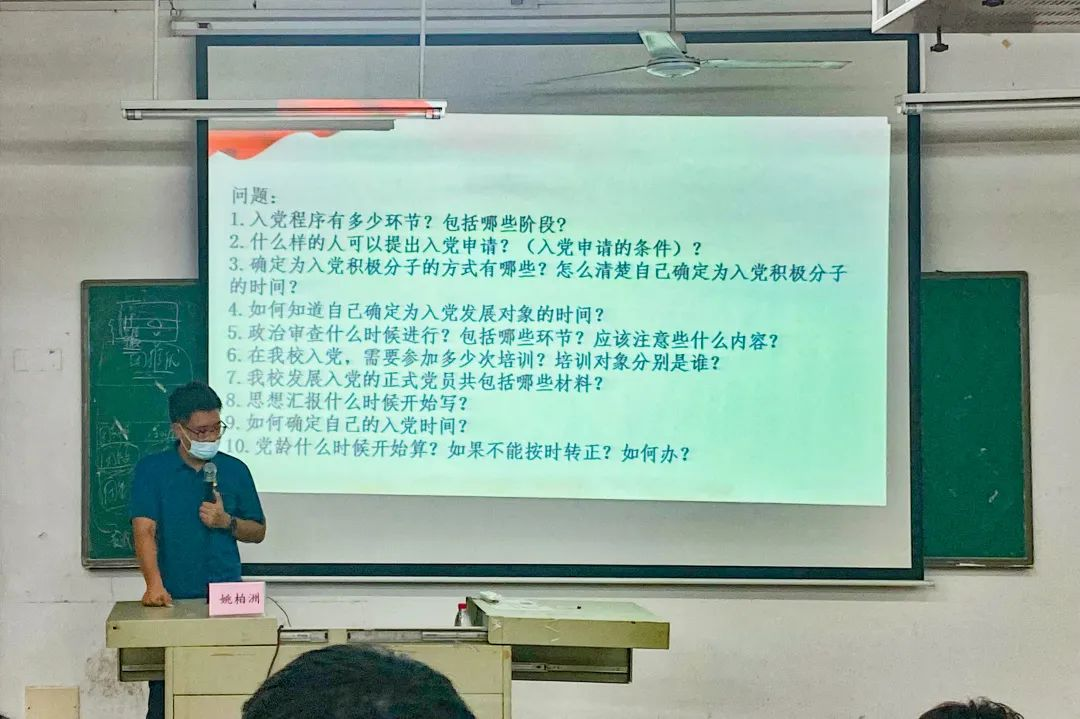 第二讲由校党委办公室组织科科长姚柏洲同志为学员们讲解《广州华商职业学院党员档案解读》。姚柏洲同志详细为大家讲述党员发展流程以及我校发展党员过程中所需的党员档案资料明细,他在解读过程中指出希望大家能通过本期党课培训,进一步加深对党的认识,端正自己的入党动机,争取早日成为一名真正的中共党员。