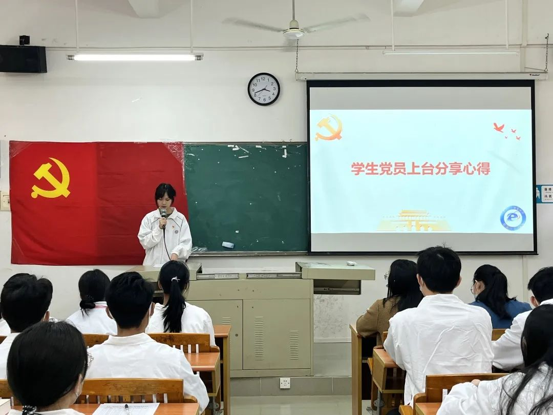 会议第三项议程,学生党员依次上台分享学习心得。党员们纷纷表示通过学习《习近平谈治国理政》第四卷,深刻认识到读书读经典对提升个人文化素养的重要意义。