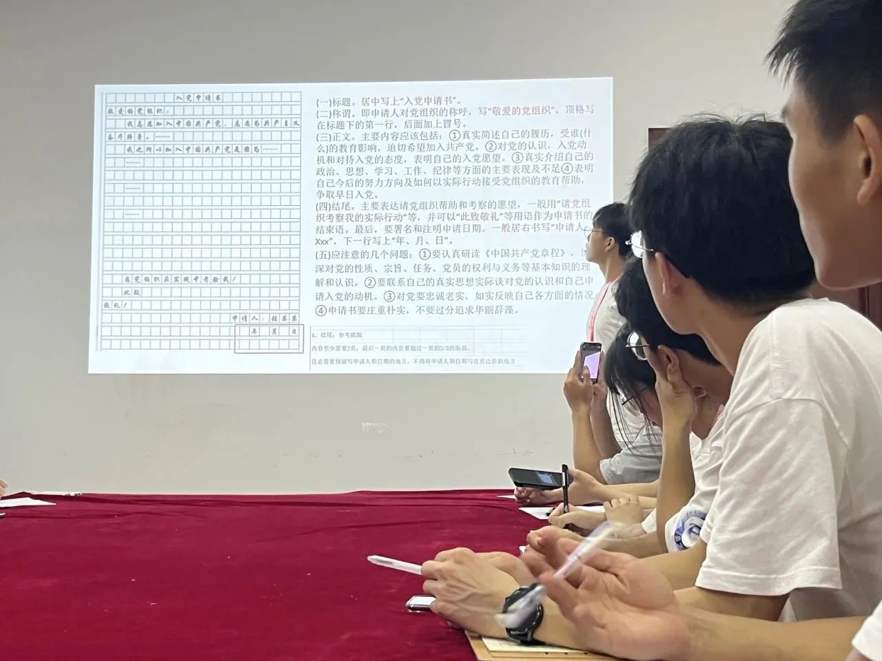 在此次培训会上,在座的助班在认真听讲并做好相应笔记的同时,还在会上积极提出自身疑惑,牢记撰写入党申请书的正确格式,为解答新生做好充分准备。