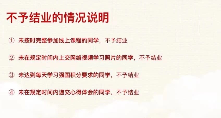 4.线下的课程中,会有党务组的工作人员进行考勤,请勿迟到、早退,避免影响最终考核成绩。
