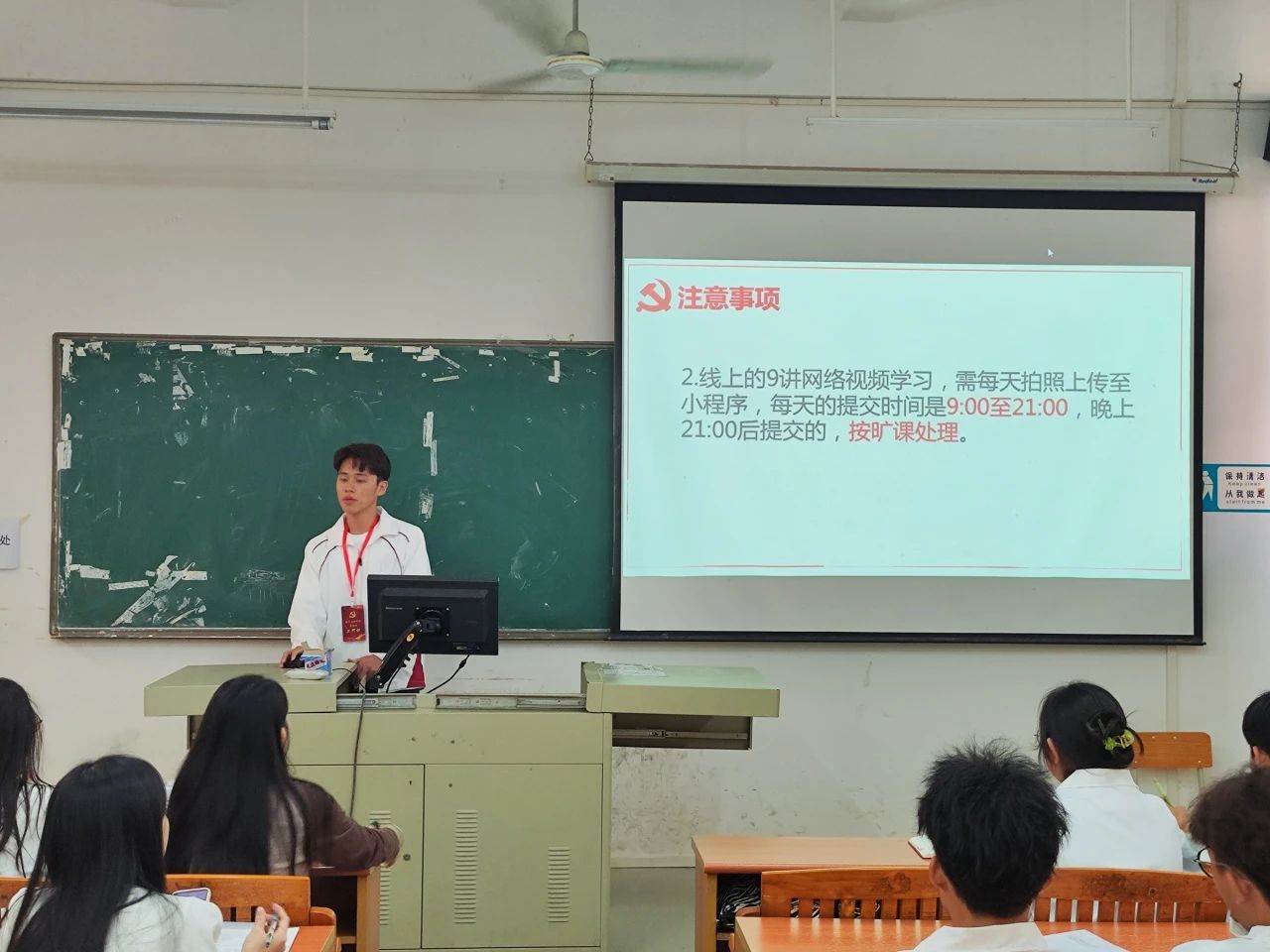 首先,党务组工作人员吴绍存为23级团支书大致梳理本次初级党课培训班的时间安排,方便后续初级党课工作的顺利开展。