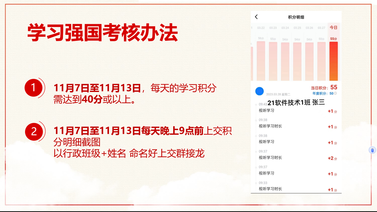 首先,他为同学们讲解了本次中级党课培训的课程安排与学习强国考核的办法。
