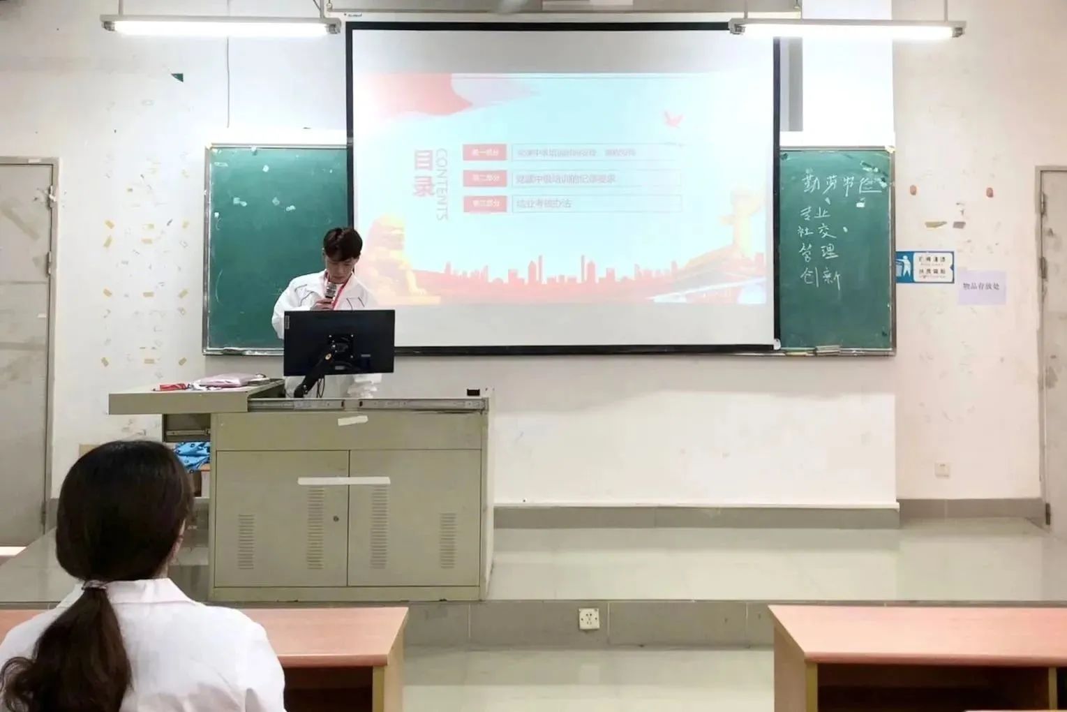 吴绍存为同学们大致讲解了本次中级党课培训的时间轴,方便后续中级党课的顺利开展,其中他分成三个部分细致地讲解了本次中级党课培训中的注意事项。